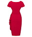 De super flatterende Elsie-jurk met korte mouwen creëert een zandloperfiguur door de slimme drapering. Afgewerkt met een asymmetrische snit die tot net onder de knie valt.