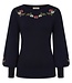 Banned's romantische trui met dramatische Victoriaanse ballonmouwen en delicate bloemenborduursels op de halslijn en manchetten.