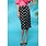 Midirok met hoge taille en opening aan de voorkant. Binnenvoering. Polkadotprint. Sluiting aan de achterkant met een rits verborgen in de naad.